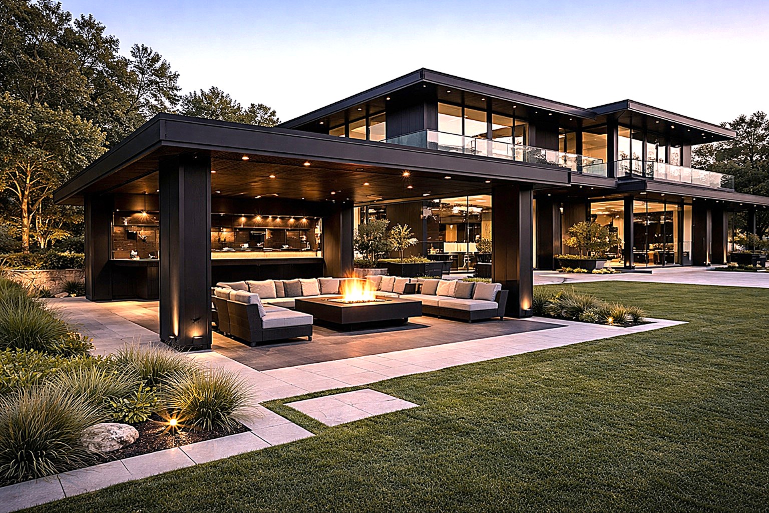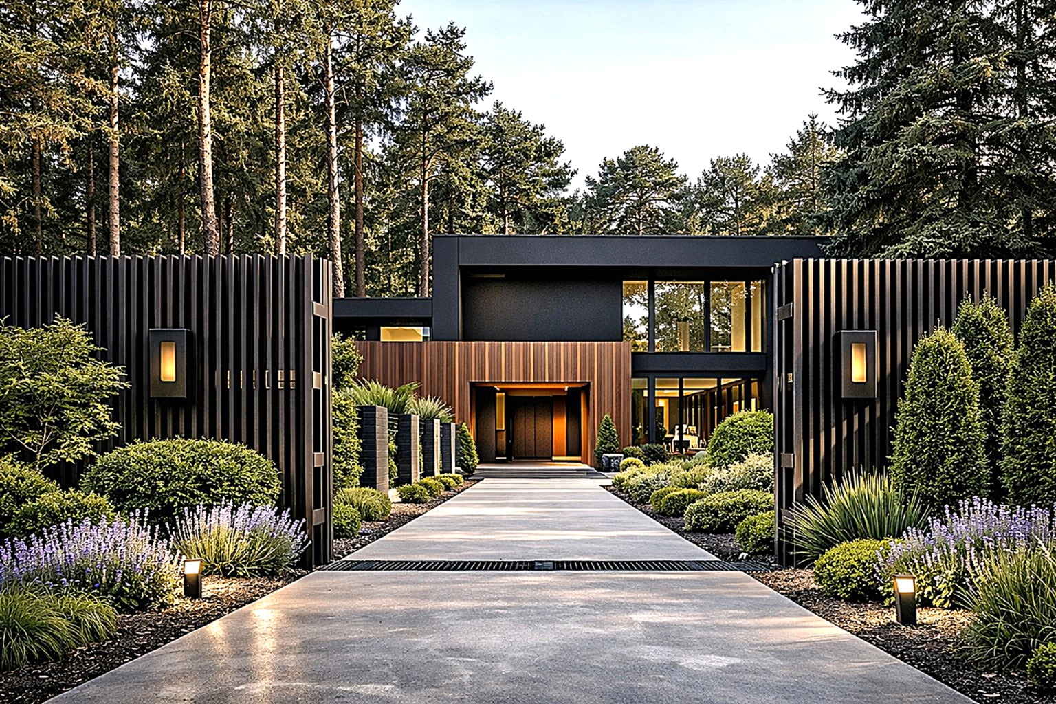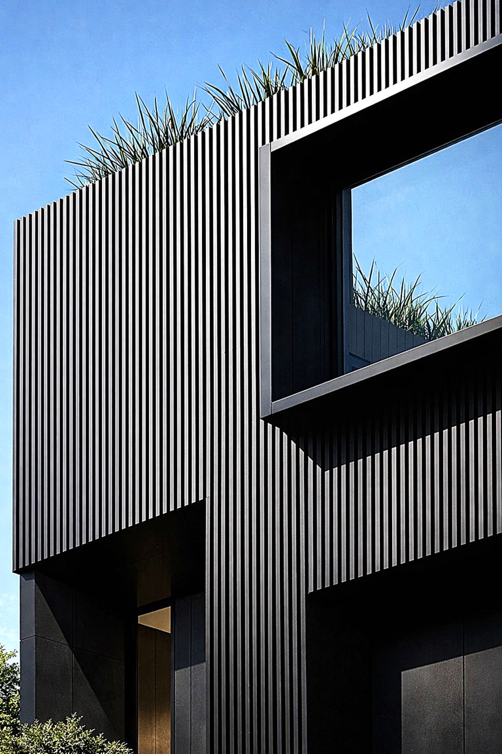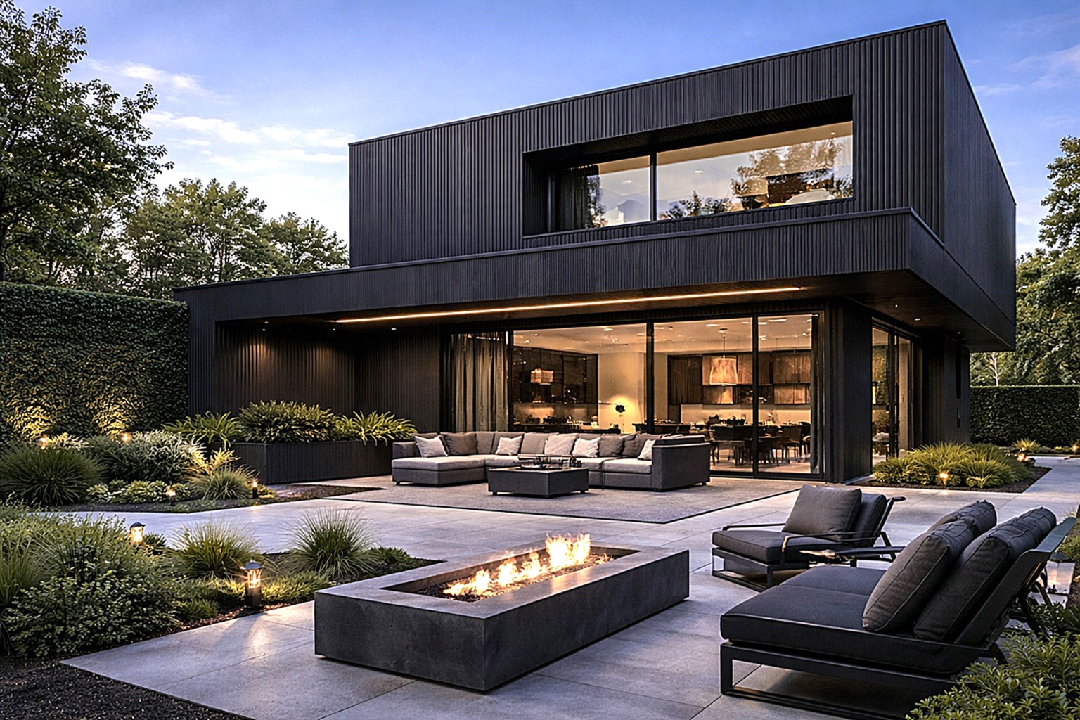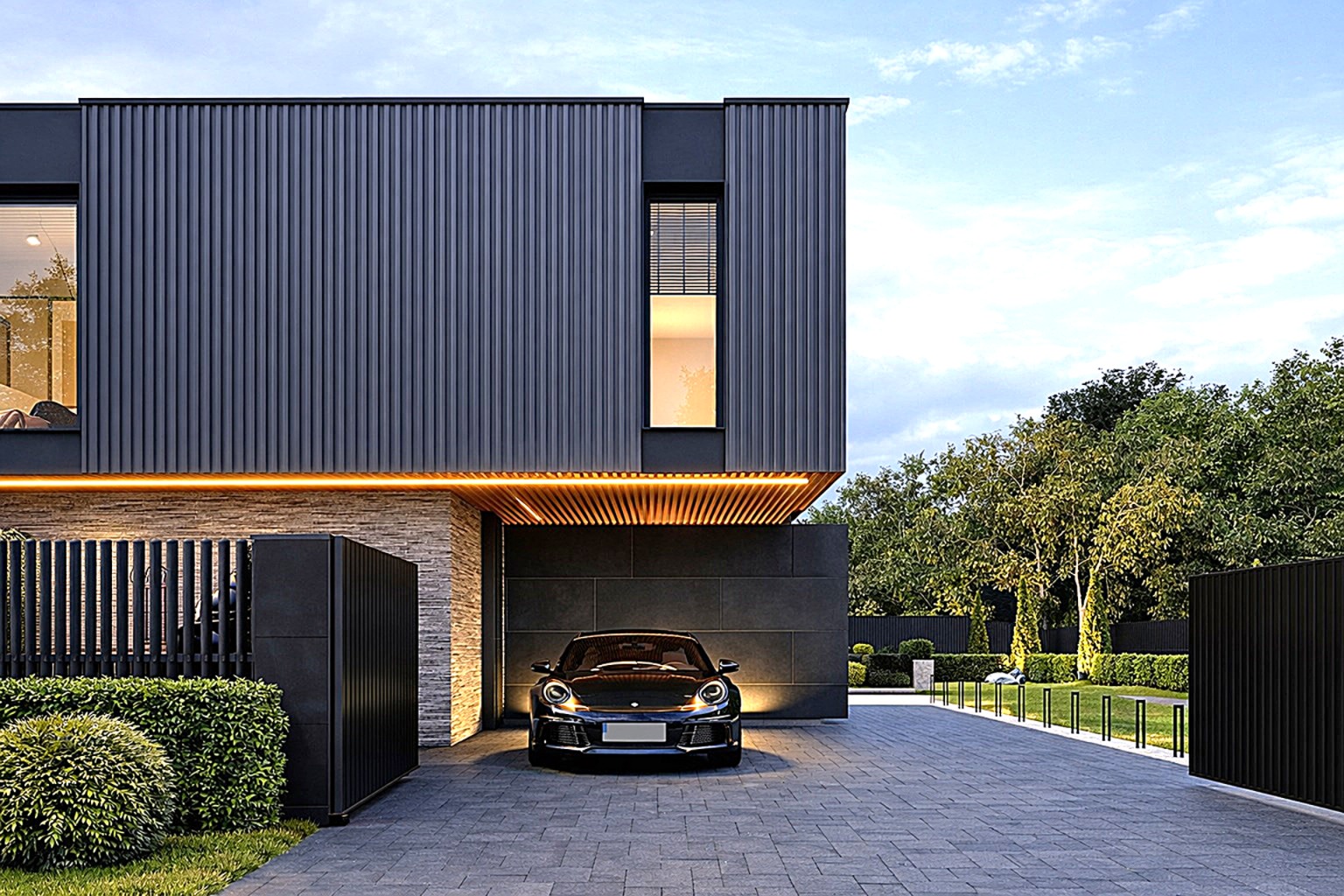 Varianta BLACK MONOLITH — casă contemporană cu arhitectură monolitică, fațadă dark, detalii premium și estetică minimalistă, definită de volume curate, contraste rafinate și prezență puternică. Modelul este orientativ și poate fi personalizat în funcție de terenul clientului, buget și cerințele urbanistice.