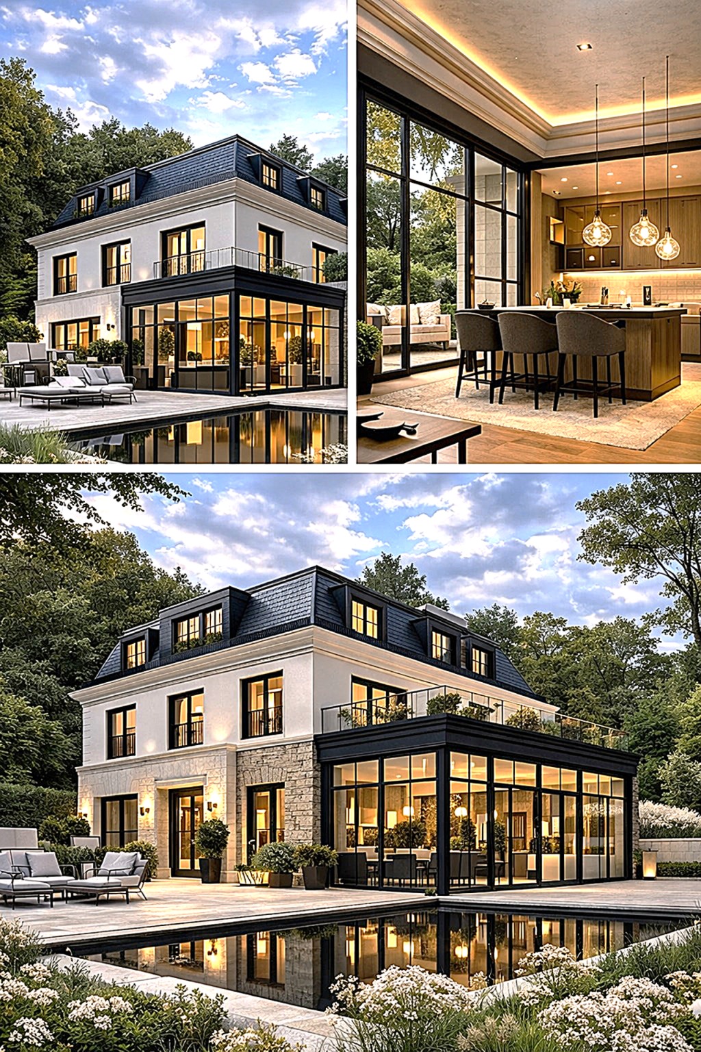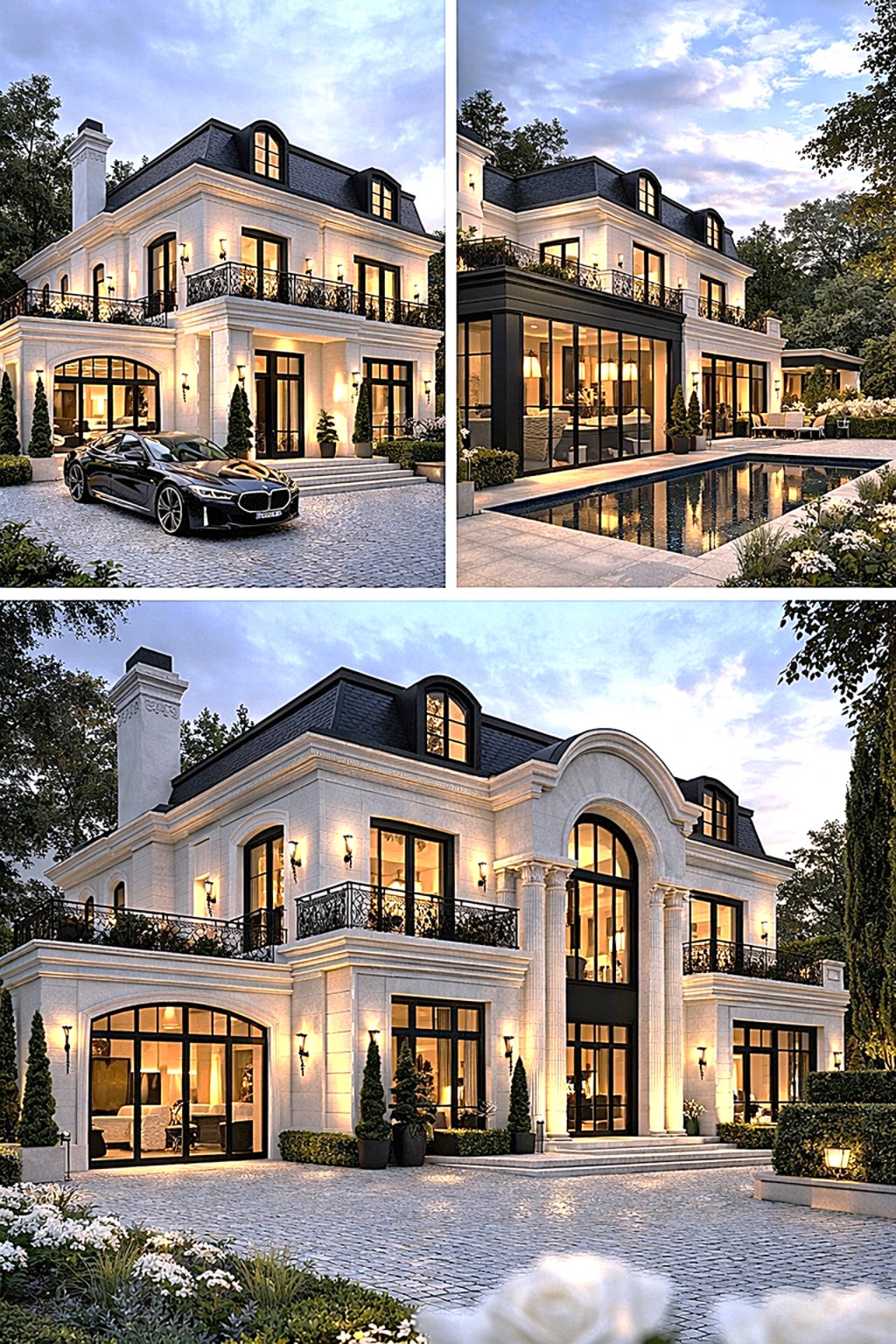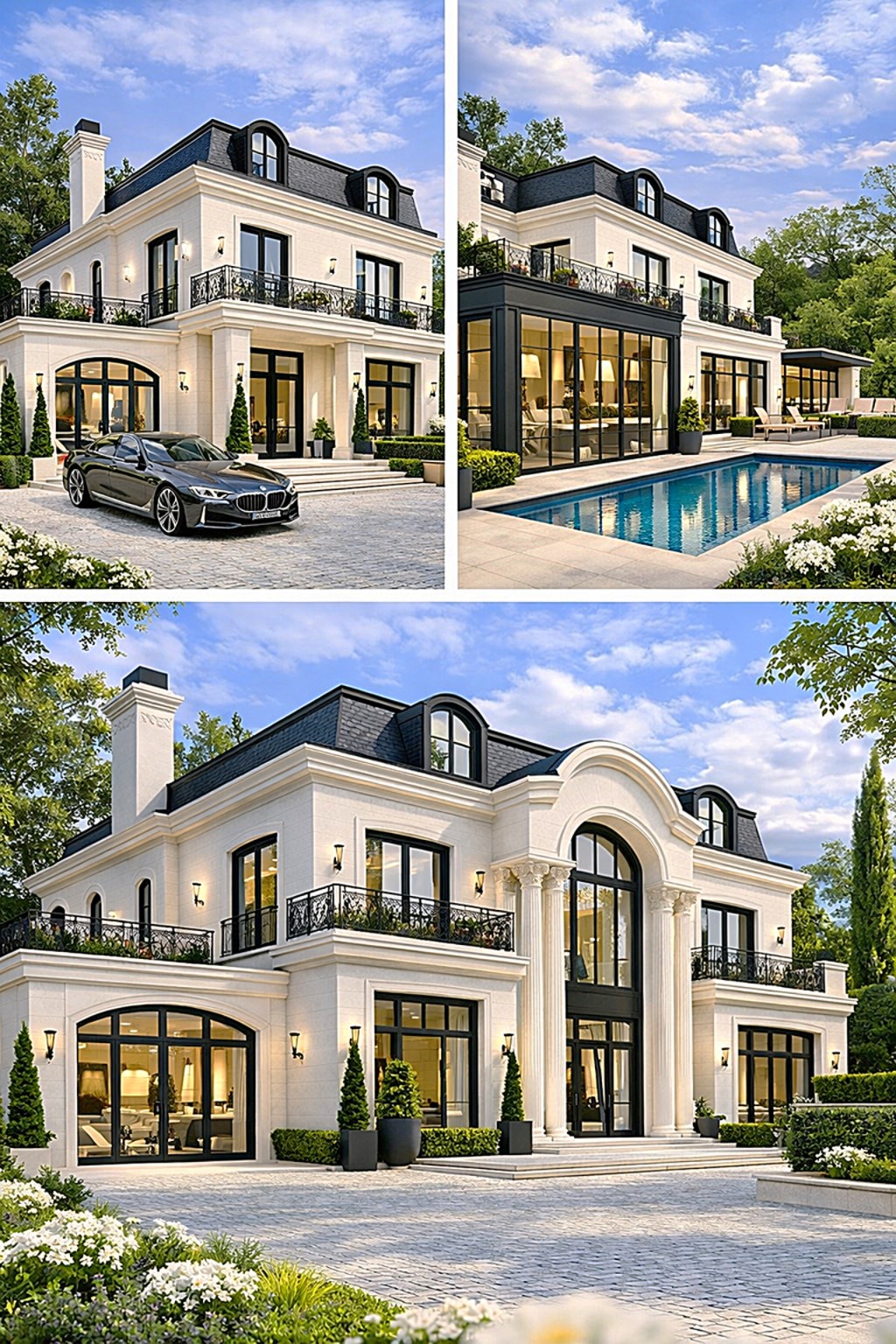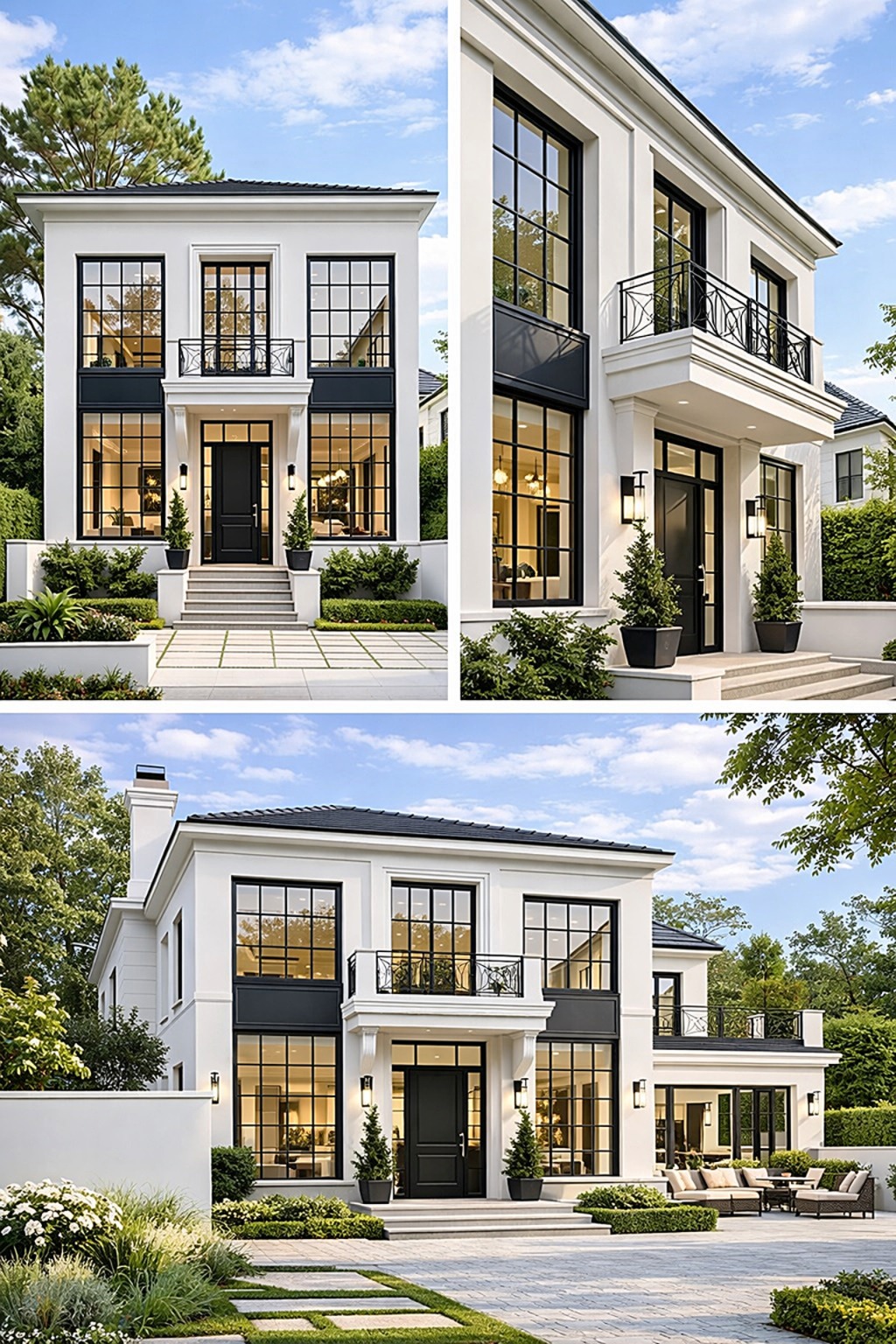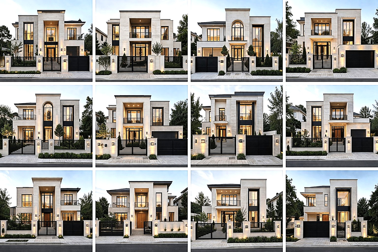Varianta NEO INTERBELIC — casă cu eleganță interbelică reinterpretată, proporții echilibrate, fațadă luminoasă și detalii clasice simplificate, cu o prezență rafinată și atemporală. Modelul este orientativ și poate fi personalizat în funcție de terenul clientului, buget și cerințele urbanistice.