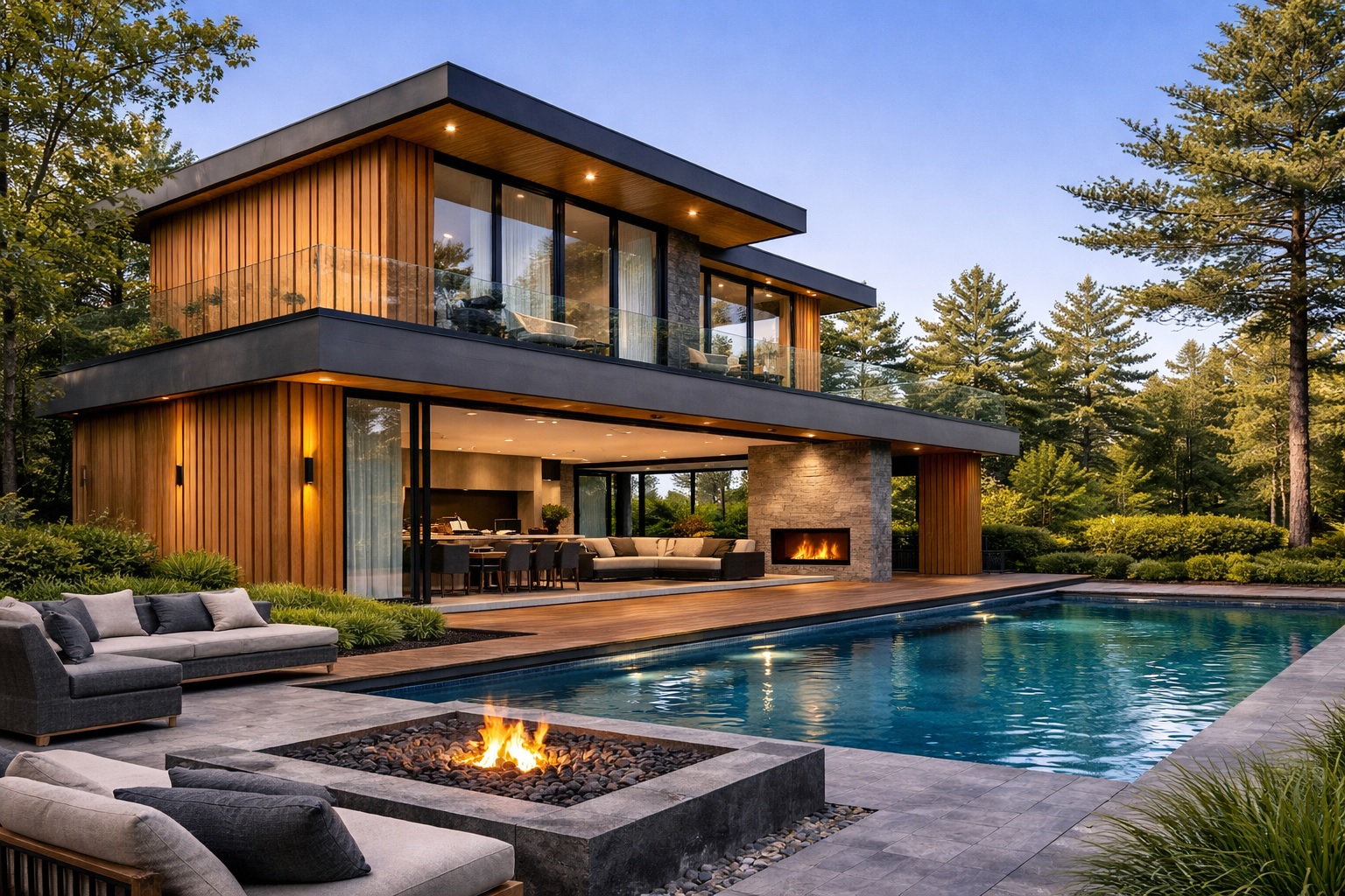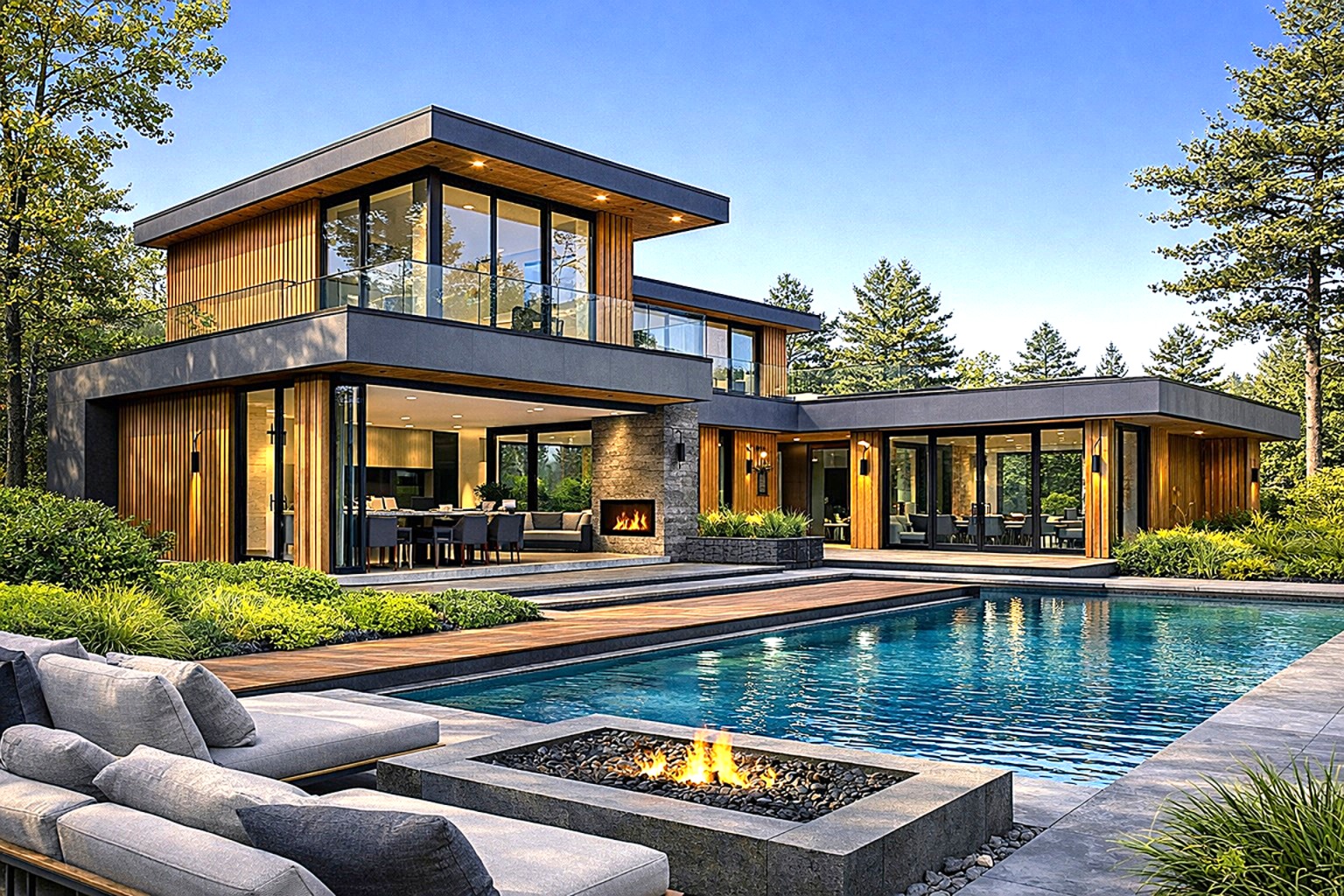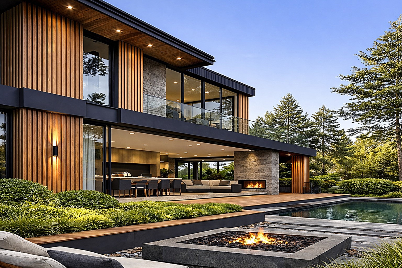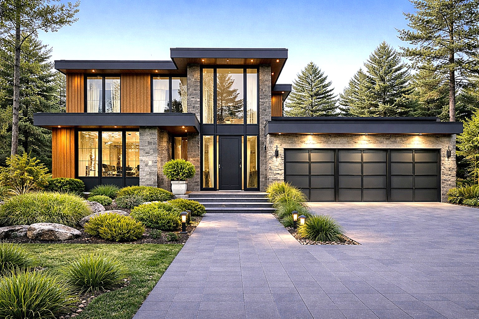 Casă premium cu volumetrie clară, materiale naturale și o imagine arhitecturală calmă, coerentă și actuală. Modelul este orientativ și poate fi personalizat în funcție de terenul clientului, buget și cerințele urbanistice.